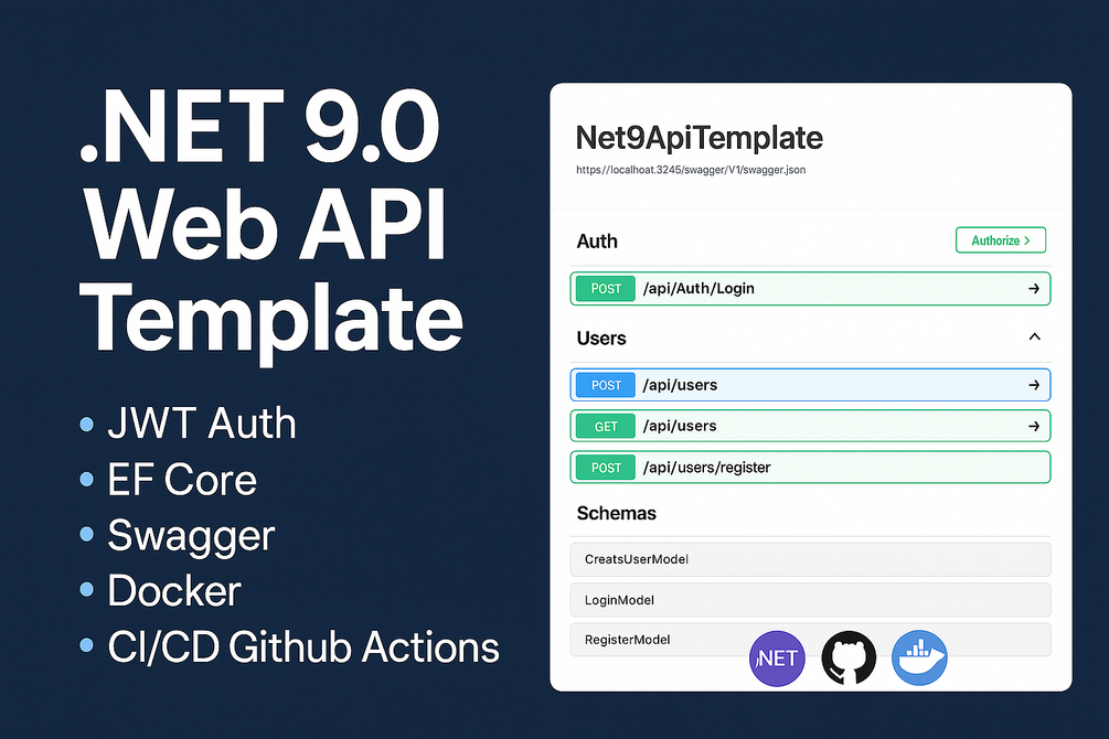 Kickstart your next project with this production-ready .NET 9.0 Web API Template! Built for developers, this template offers a secure, scalable foundation for RESTful APIs, complete with modern features and best practices. Whether you're launching a startup, building a side project, or learning .NET 9, this template saves you hours of setup.
